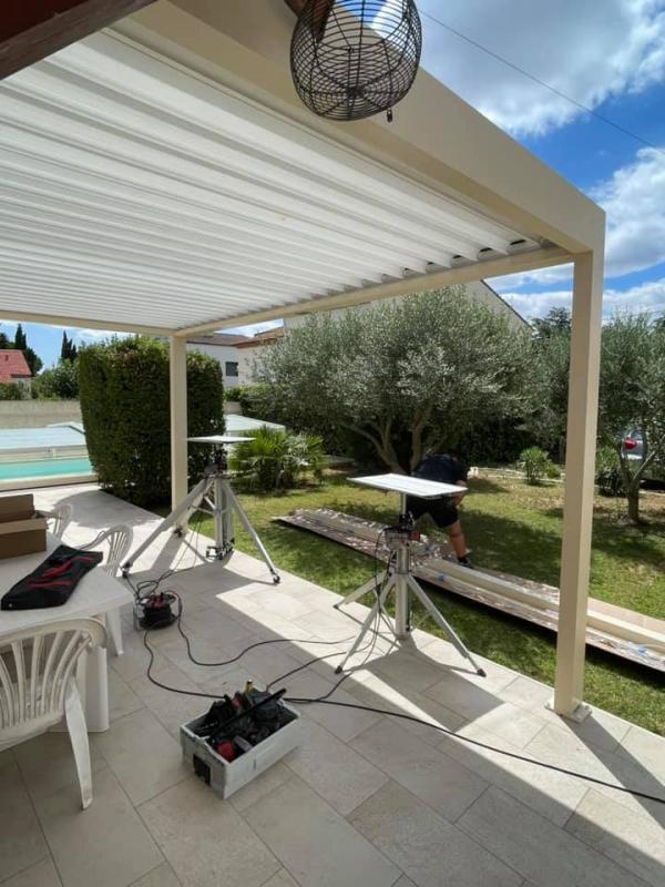 Installation d'une pergola bioclimatique à lames orientables, stores ZIP et lumières LED intégrés